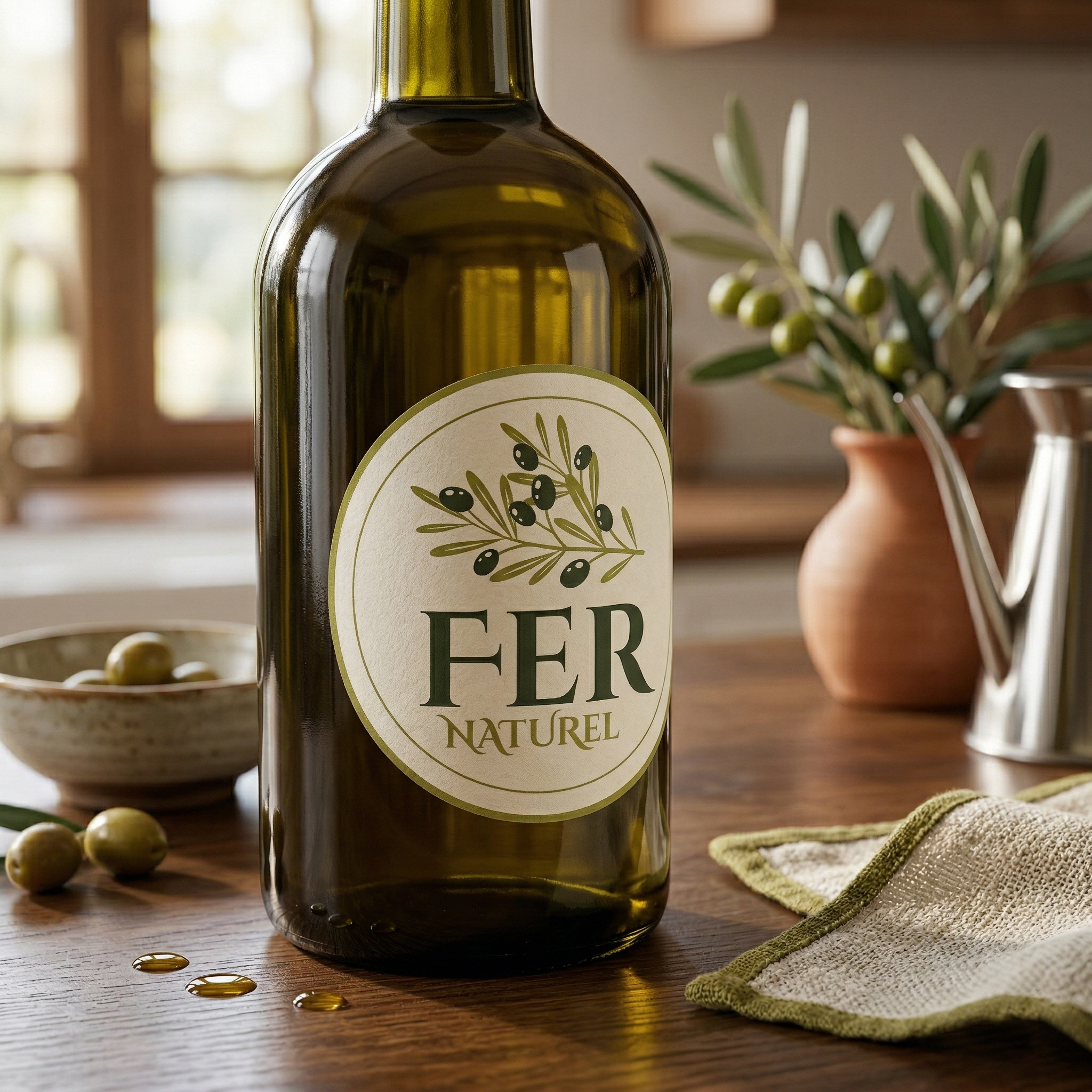Logo, dairesel bir mühür formunda kurgulanarak ürünün güvenilirliğini ve kalıcılığını simgeliyor. Merkezde yer alan illüstratif zeytin dalı, ürünün kaynağına olan bağlılığını ifade ederken, kullanılan renk paleti tamamen doğanın içinden seçildi.